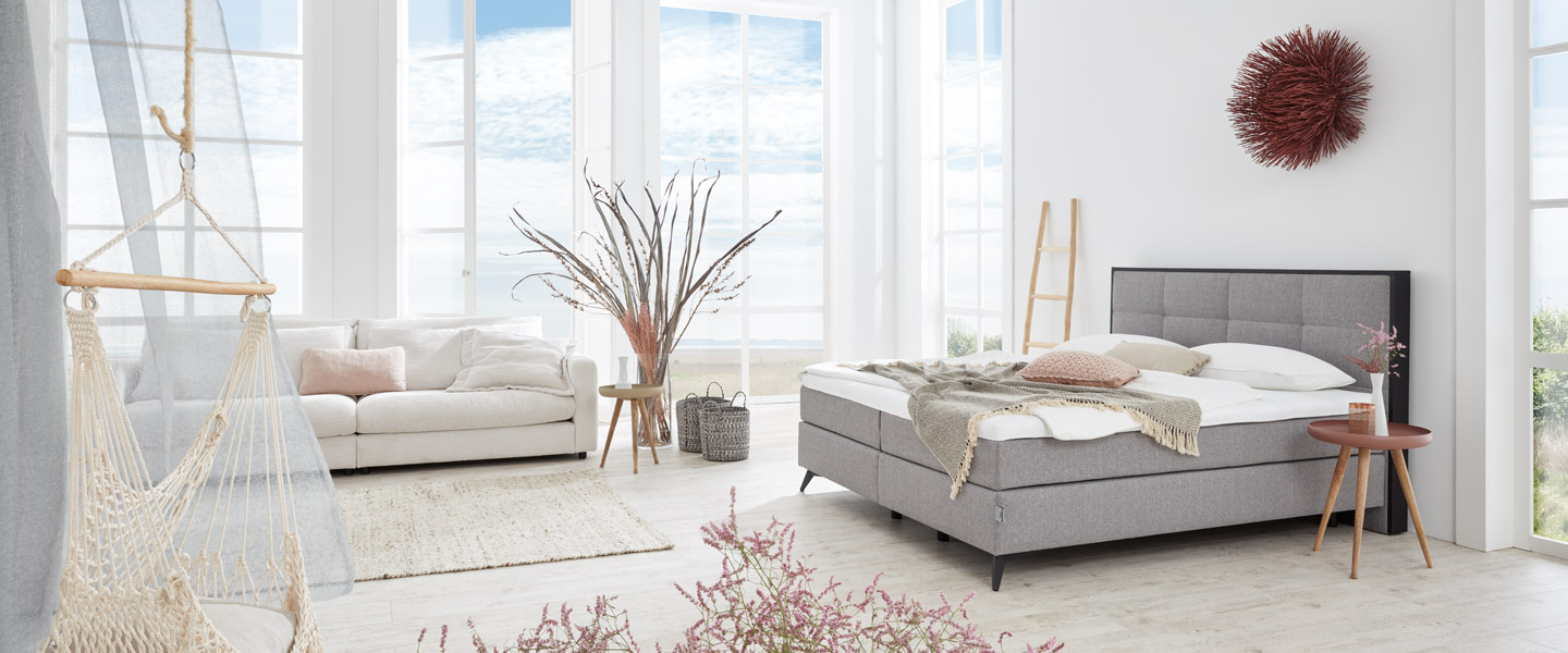 Die Boxspringbetten der Serie LANGEOOG sind so vielfältig schön wie ein Urlaub am Strand.