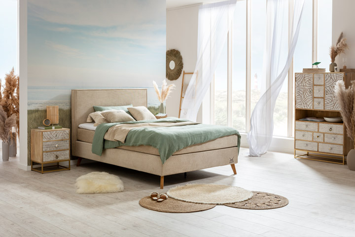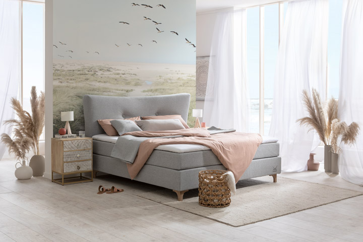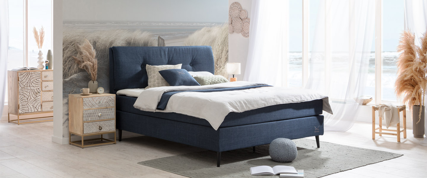 Die Boxspringbetten der Serie POEL versüßen uns die Nacht am Meer.